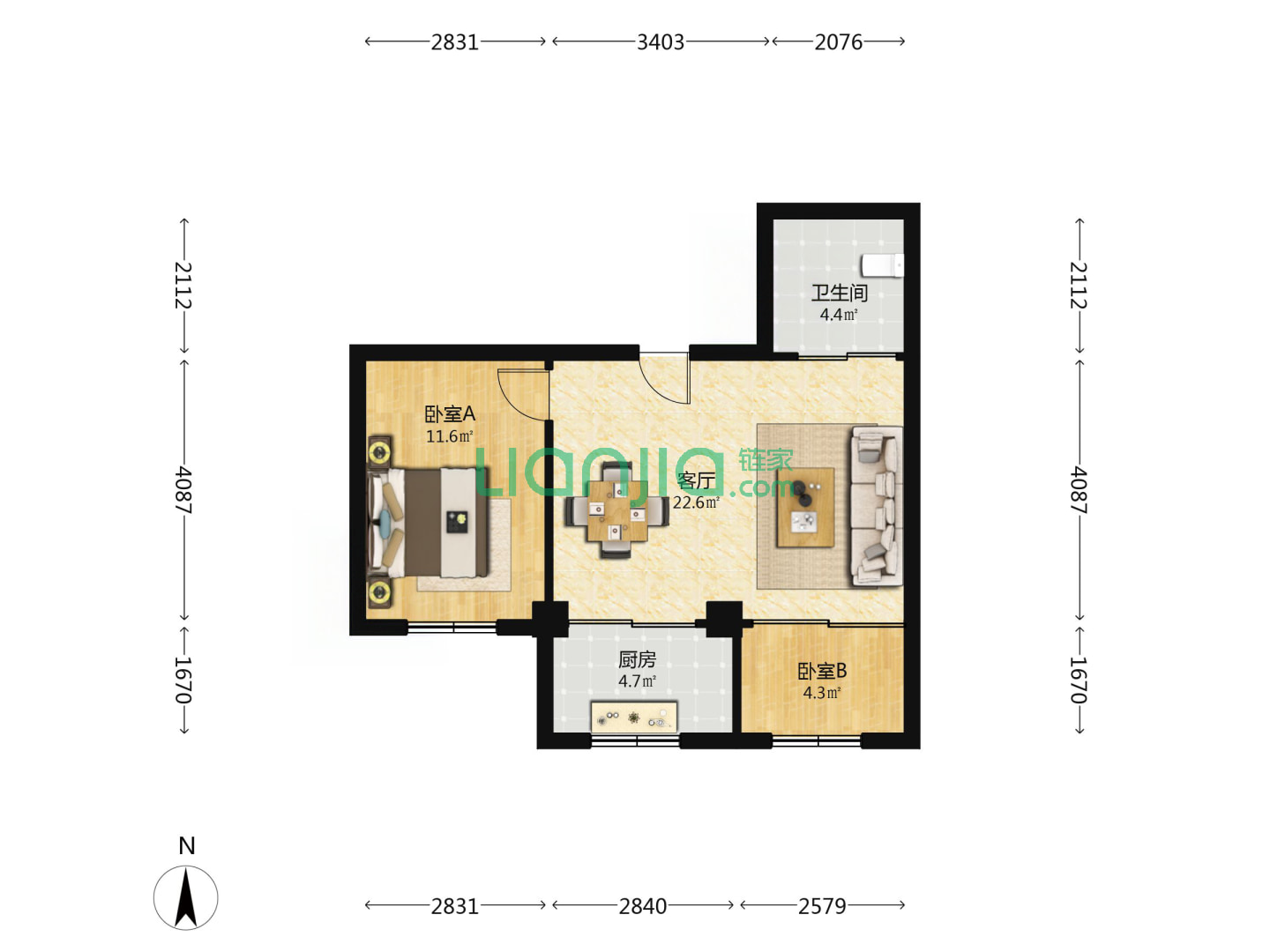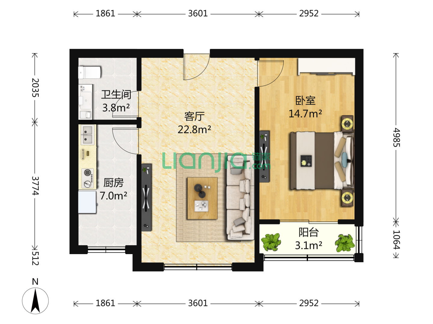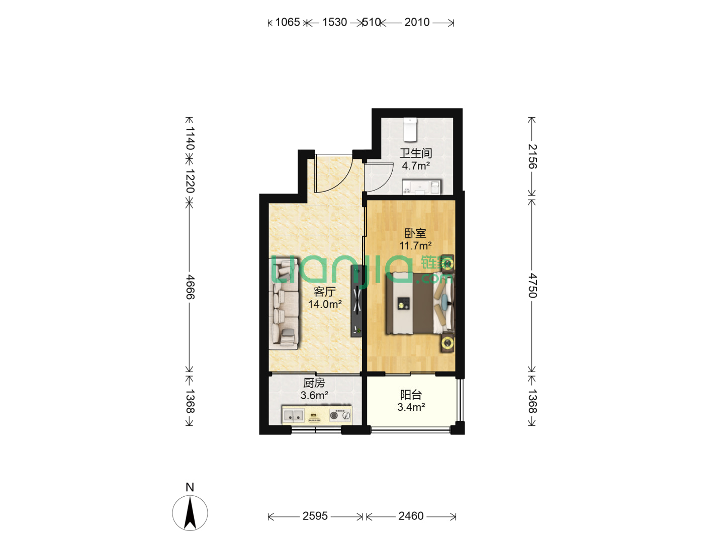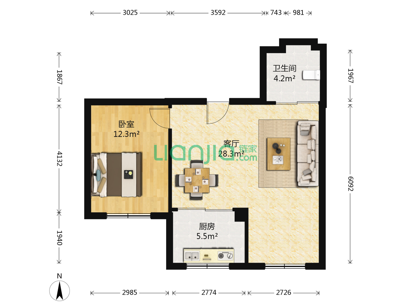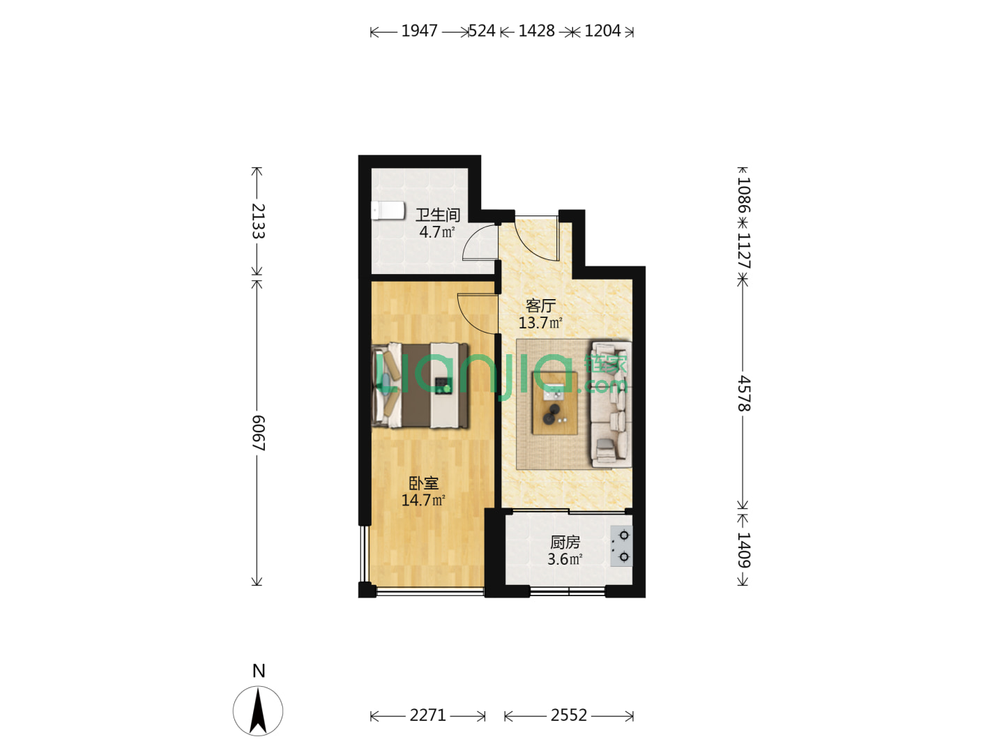 1室1厅1卫 48㎡