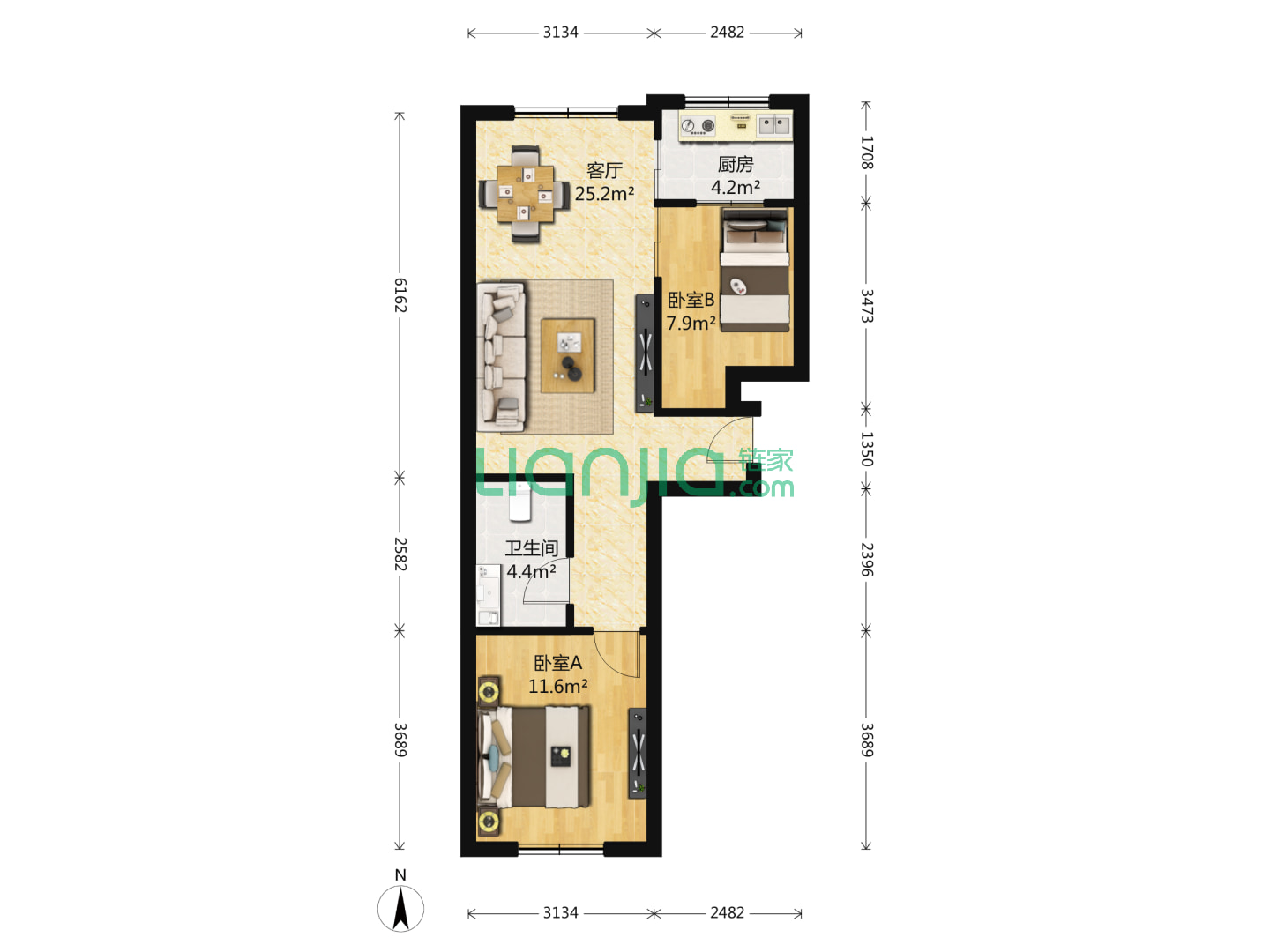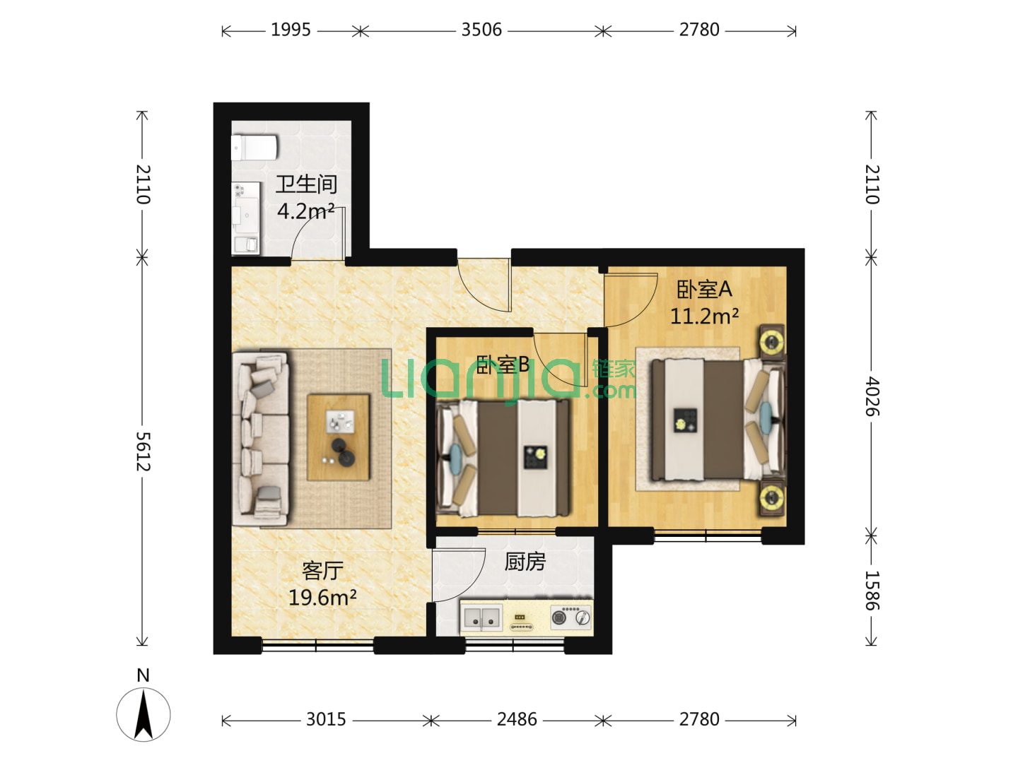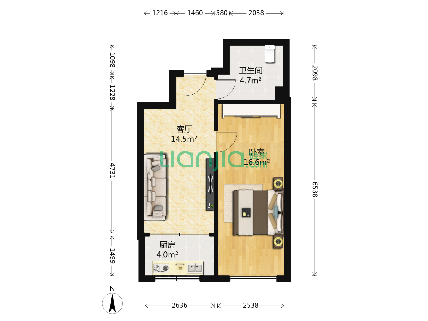 2室1厅1卫 65㎡