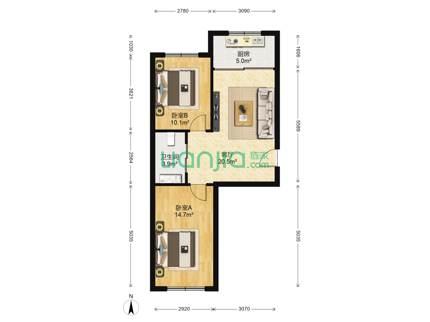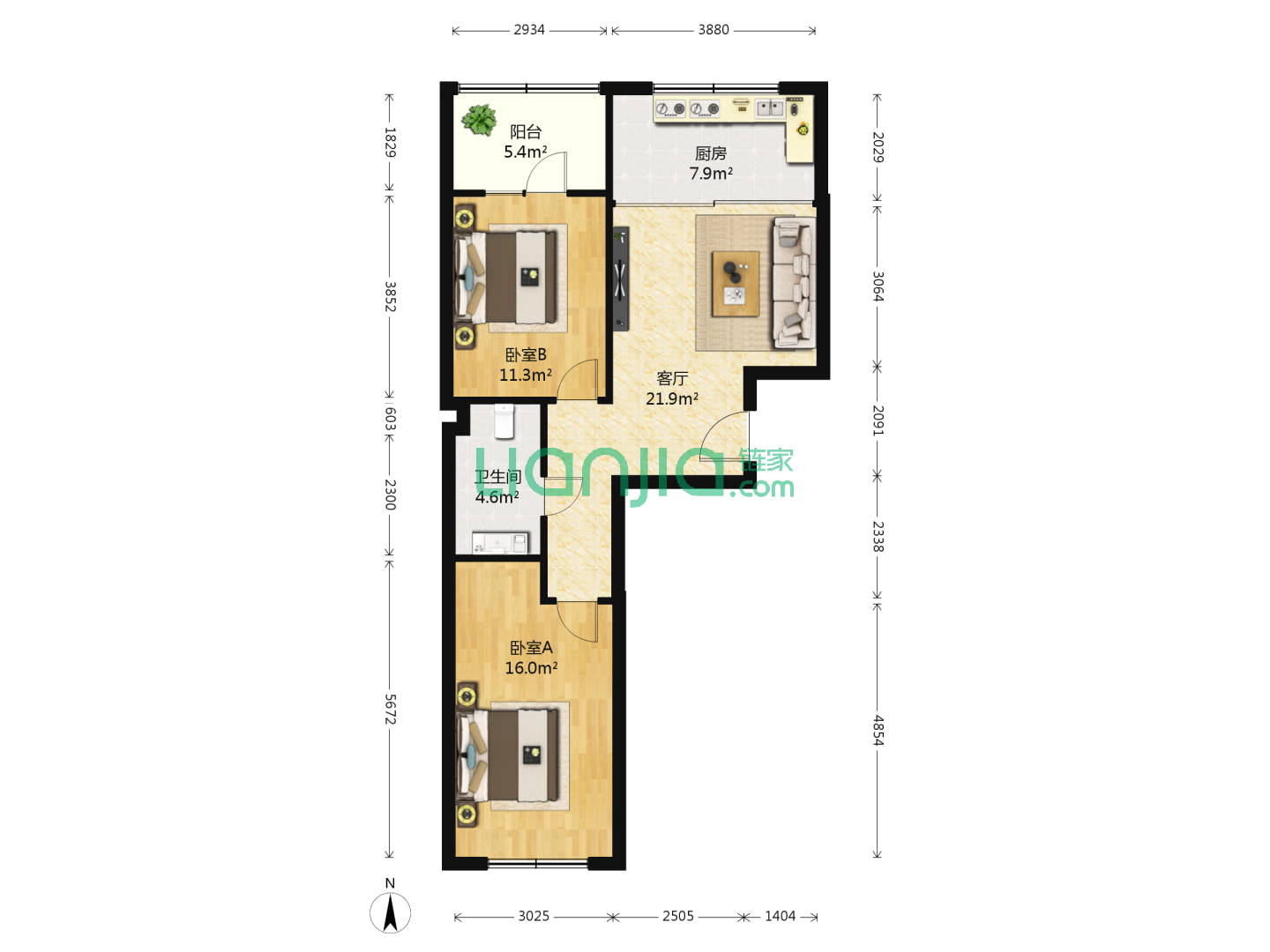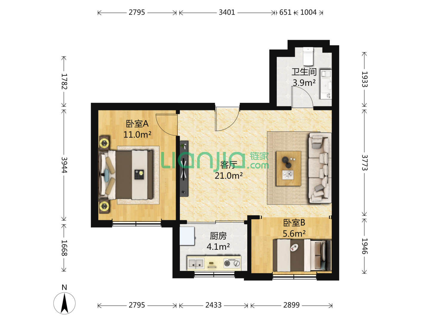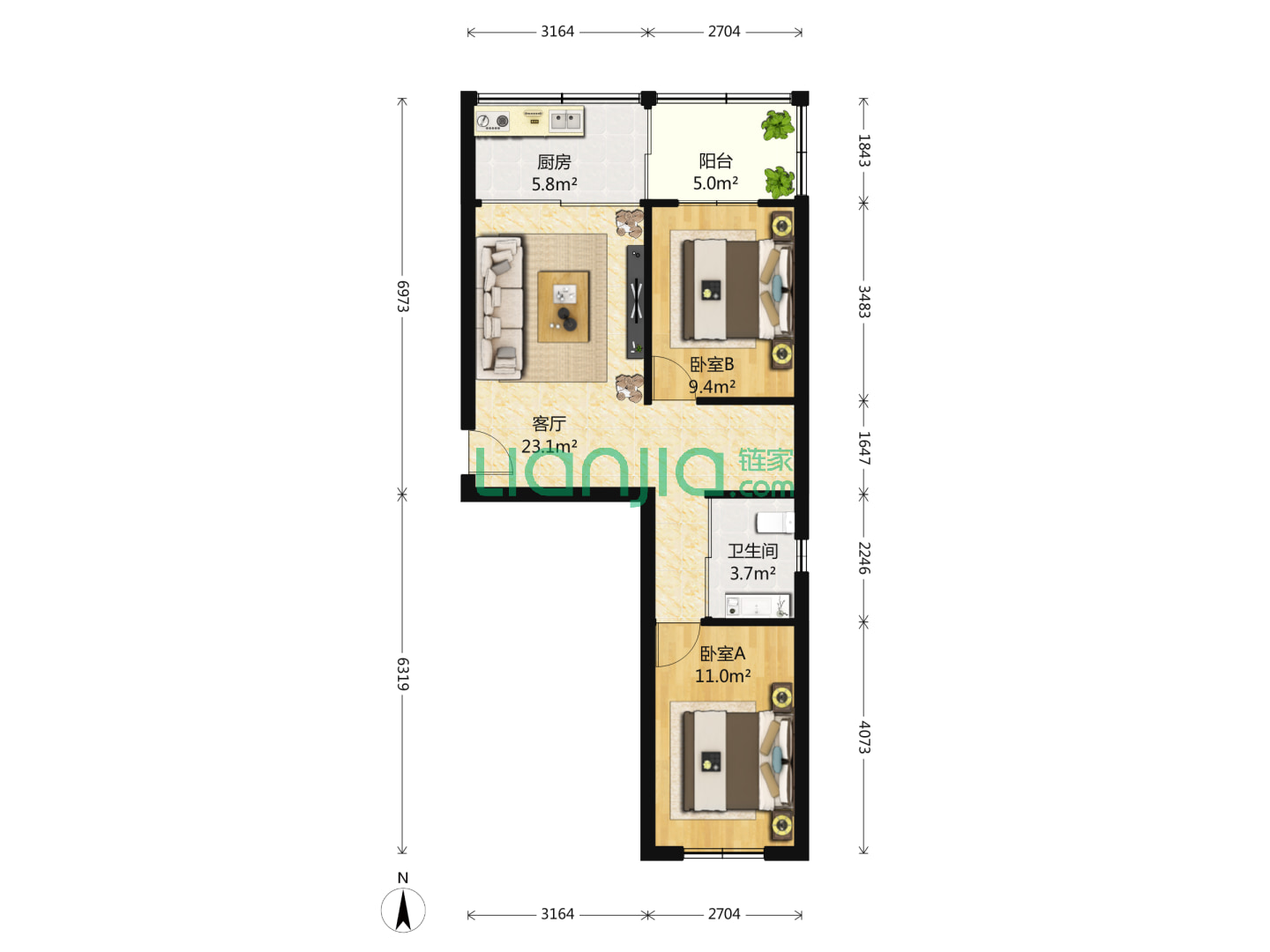2室1厅1卫 69㎡