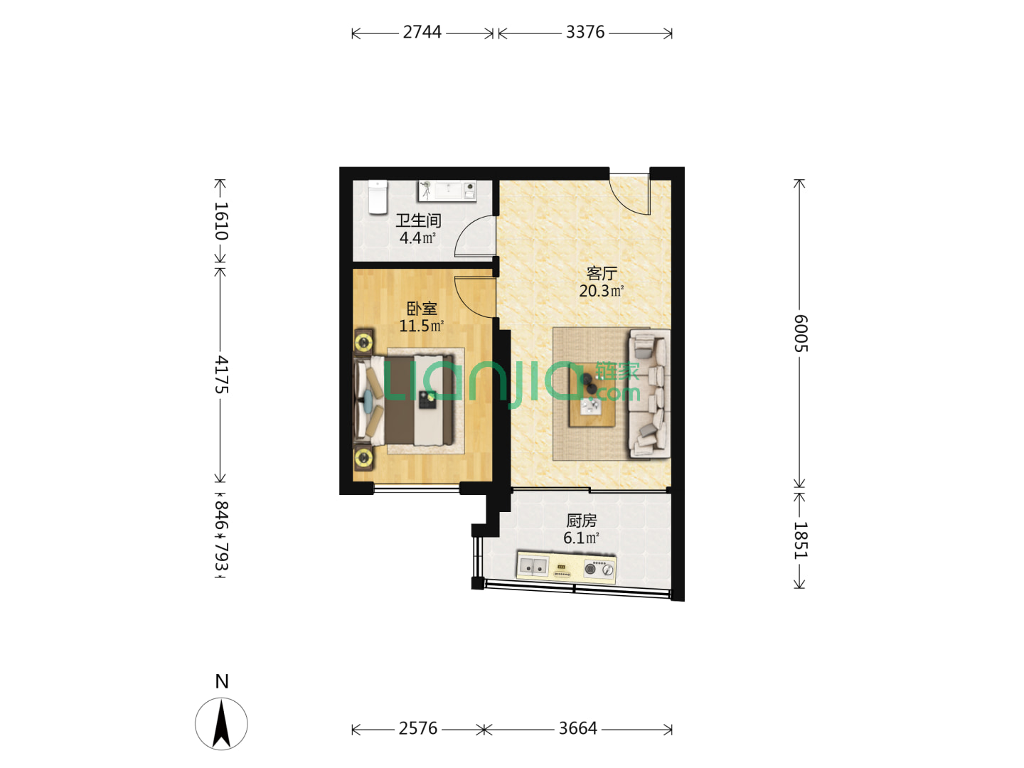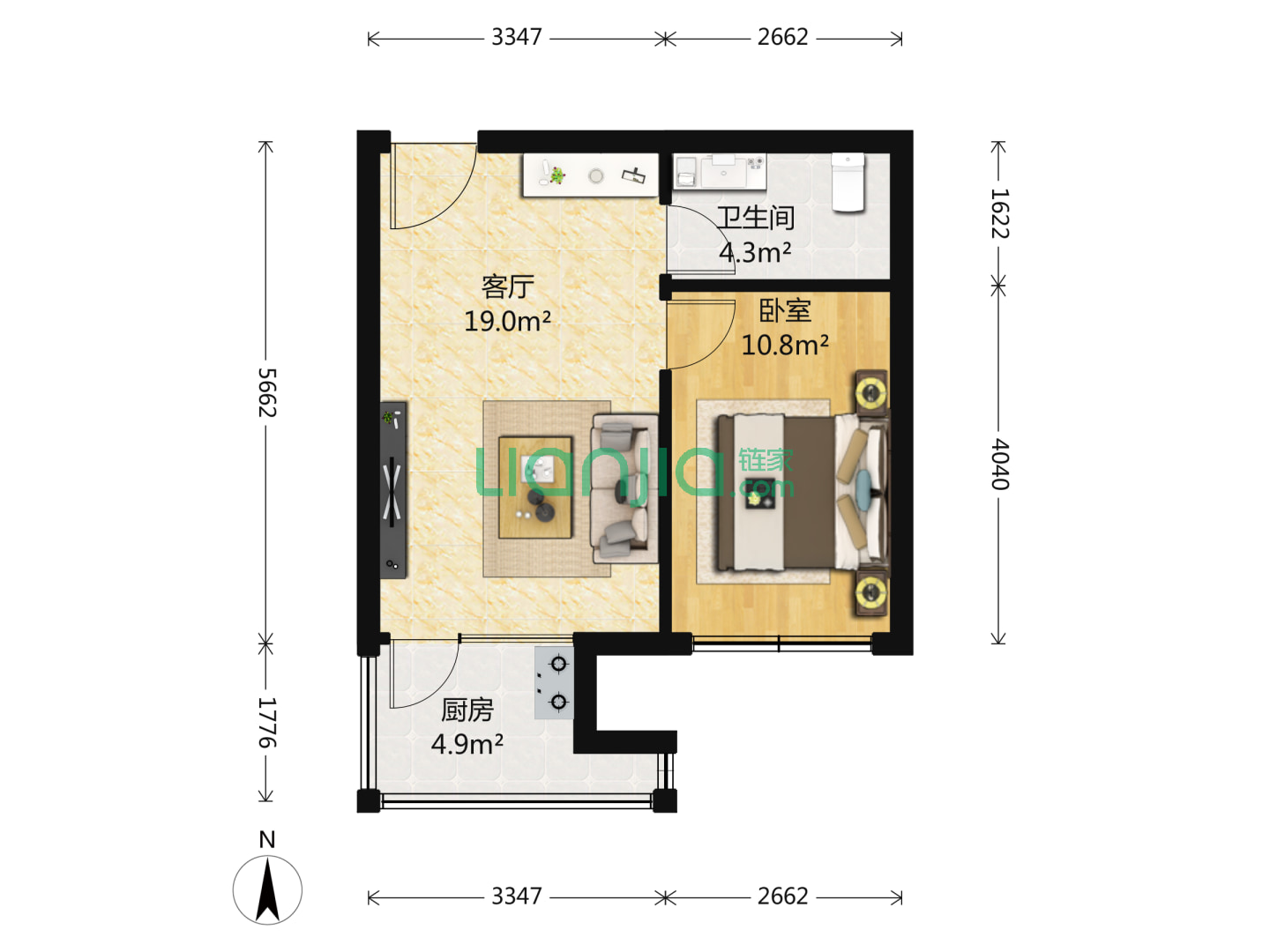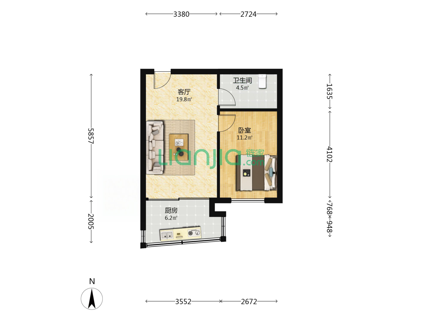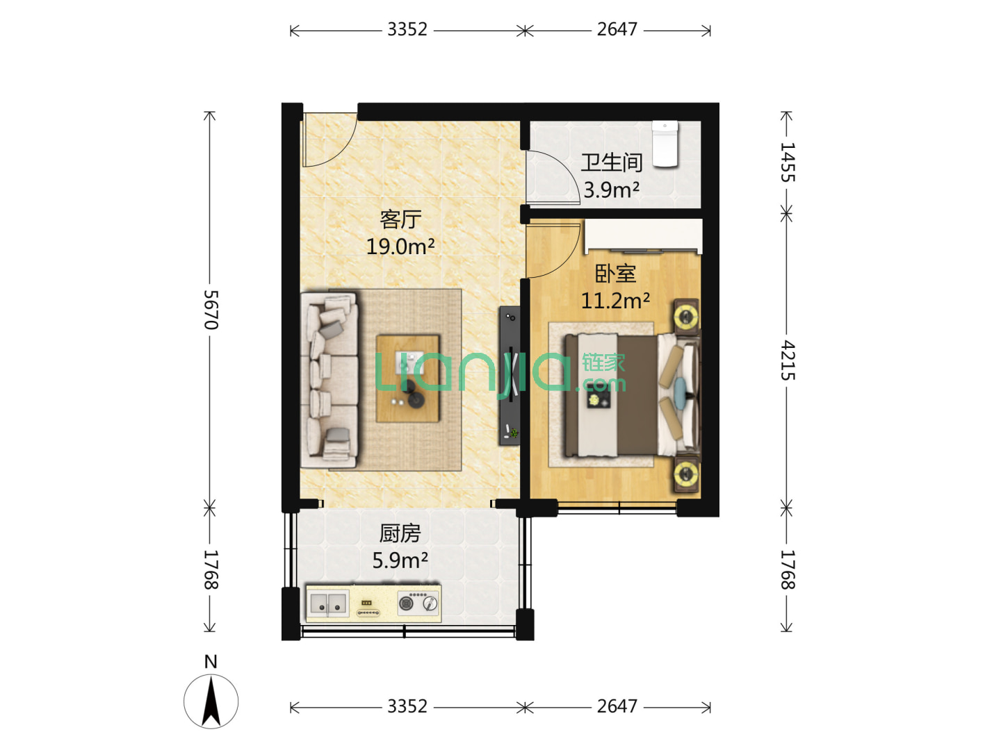 光伸绿洲半岛北岸,1室1厅1卫 52㎡