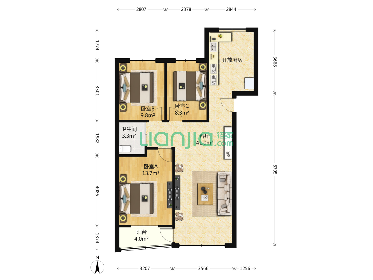 光伸绿洲半岛北岸,3室1厅1卫 110㎡