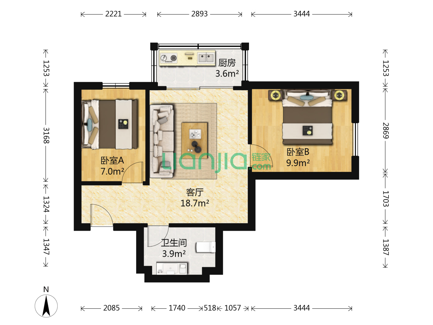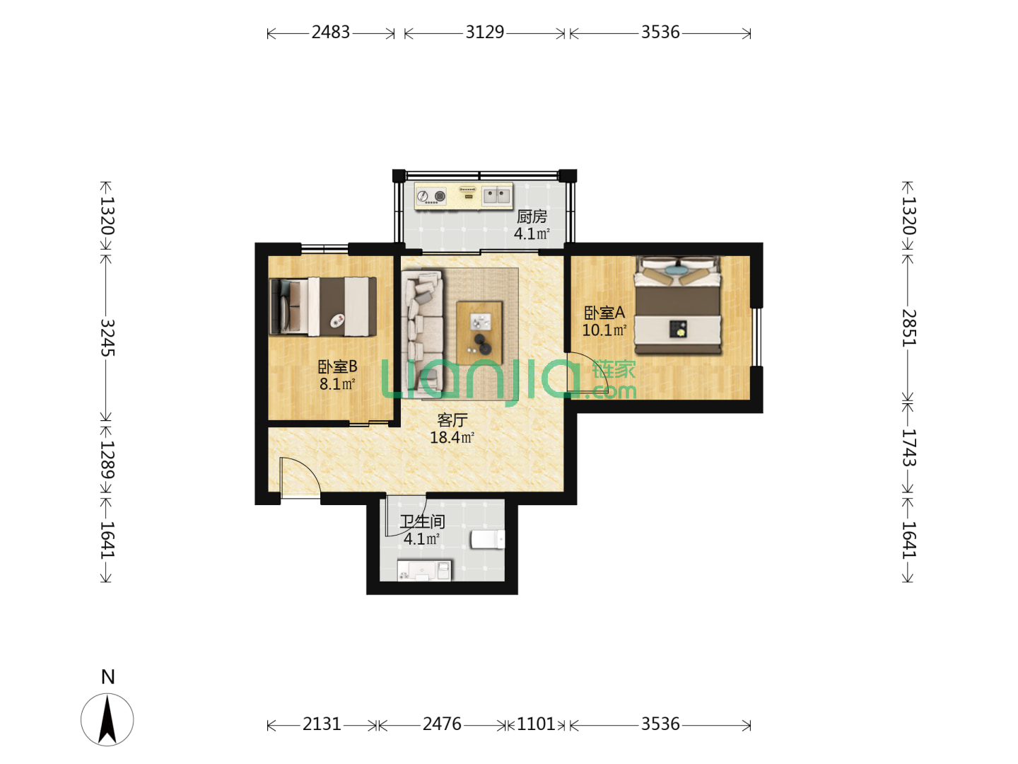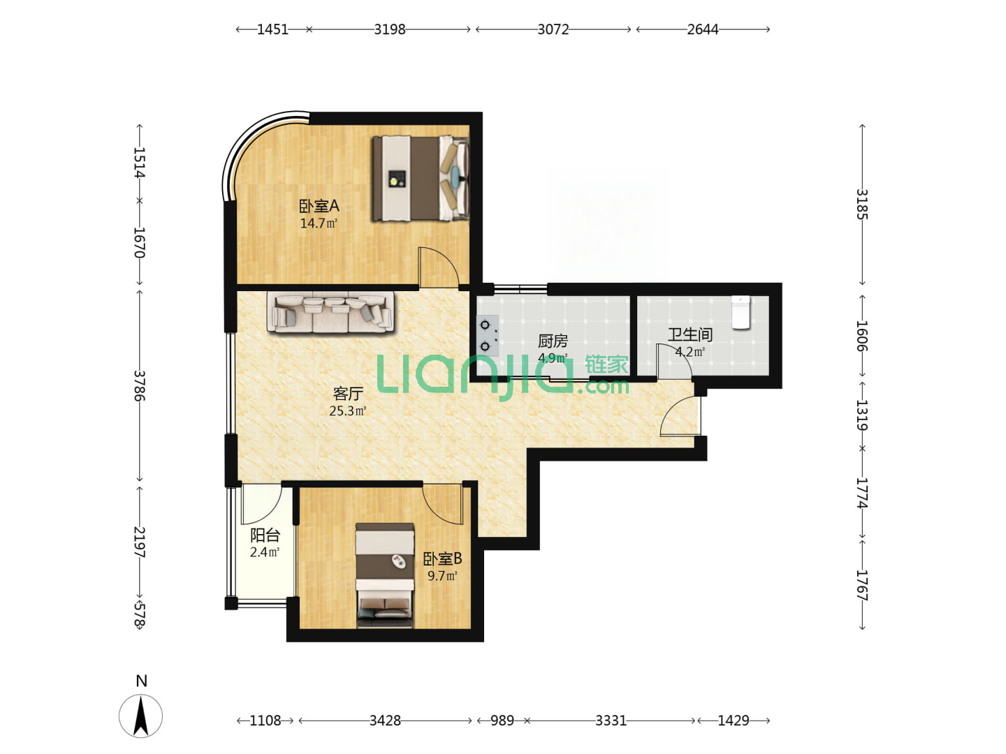光伸绿洲半岛北岸,2室1厅1卫 84㎡